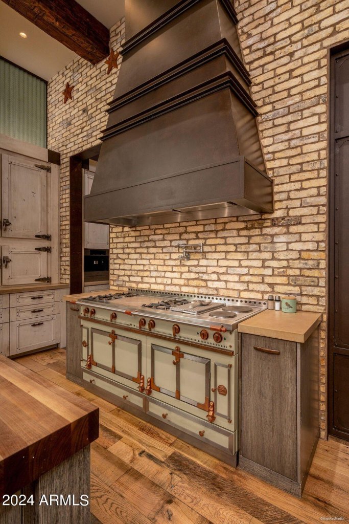 With a vintage La Cornue Range that is apparently over 100 years old and has been fully restored and updated.