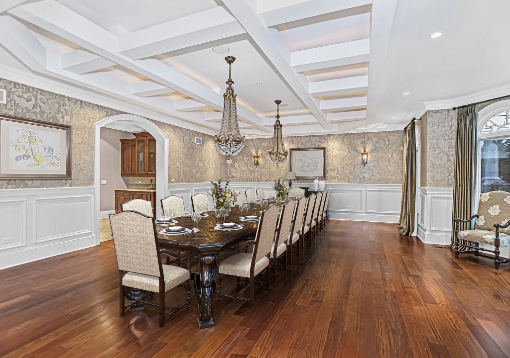 I count 16 chairs for the dining table?? You could even go bigger if you want. Love the coffered ceiling as well.