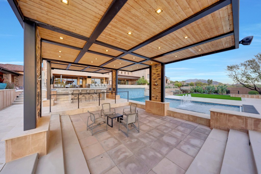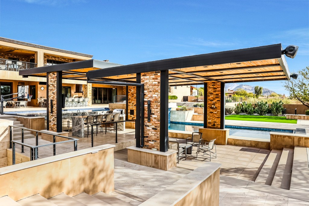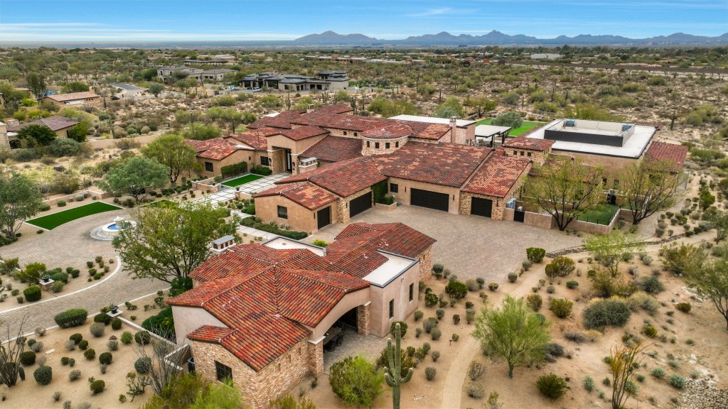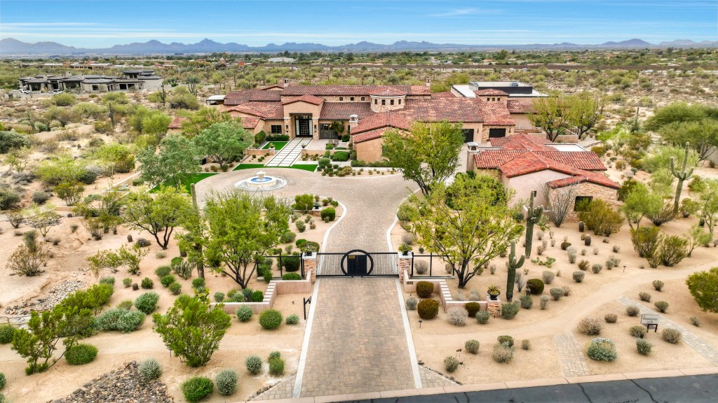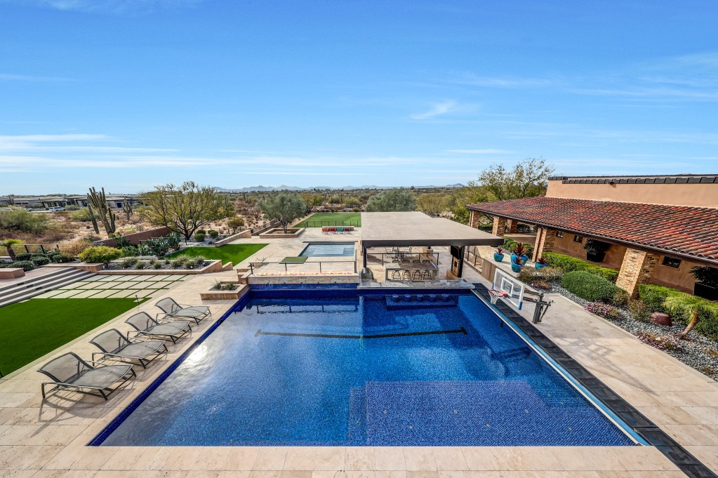 HOUSE COMES FULLY FURNISHED HardtSeasons is a breathtaking estate situated on nearly 5 acres in the prestigious Prado Estates of North Scottsdale. Designed to provide unmatched privacy and exclusivity, the property offers sweeping mountain and city views, capturing Arizona’s most spectacular sunsets. The 21,410 sq. ft. main residence combines luxury and comfort with five spacious main bedrooms and 18 elegant bathrooms. Built seven years ago, the home features an abundance of natural light and seamless indoor-outdoor living. The estate is an entertainer’s dream, boasting two resort-style pools, outdoor TVs, and a full bar with dramatic fire and water features. The formal living room, with its soaring ceilings and expansive windows, provides a perfect space for year-round elegance or festive holiday celebrations. Over 60 NBA players, including legends and stars like Kobe Bryant, Chris Paul, Damian Lillard, Torrey Craig, and Mikal Bridges, have visited this extraordinary home. Their presence highlights the estate’s reputation as a destination for luxury, comfort, and recreation, making it a truly iconic property. The master retreat is a private sanctuary with spa-like amenities, stunning views, and direct outdoor access. Family-friendly spaces include a dedicated playroom with an enclosed grassy area for children. A separate 1,551 sq. ft. guest house with two bedrooms offers privacy and comfort for extended stays, complete with its own entrance and amenities. The estate’s amenities are unparalleled. A regulation-size underground basketball gym, 15 feet below ground, features a professional scoreboard, loft, locker room with five bathrooms, and private parking. The gym can also be converted into a pickleball court, making it a versatile space for sports and recreation. The Jordan Room, a museum-quality display of 290 Michael Jordan sneakers, holds up to 325 pairs and was crafted with $300,000 of meticulous detail. A golf practice area features a 9-hole putting green, five chipping pads, and practice ranges from 10 to 65 yards. Additionally, the property includes a state-of-the-art golf simulator and a luxurious movie theatre, providing endless entertainment options for residents and guests. Architectural highlights include Costa Rican-inspired wood ceilings and Chicago brick accents, reflecting the owner’s roots, while the Elan Control System integrates smart home technology for effortless living. Additional features include three Wolf ovens, including a conduction model optimal for gourmet cooking, and a jogging track encircling the entire property. The track measures 3/10 of a mile, with seven laps equaling two miles.