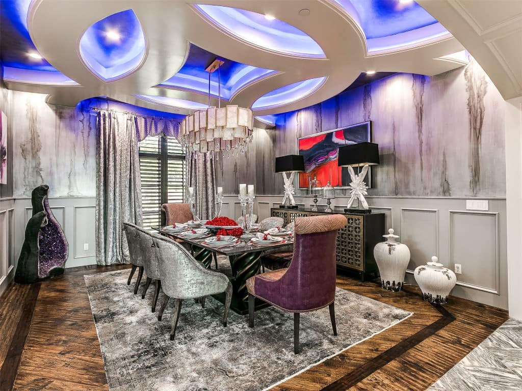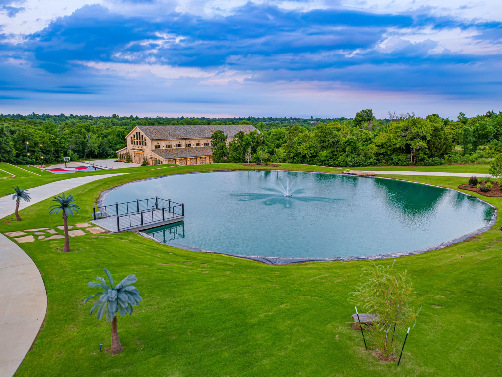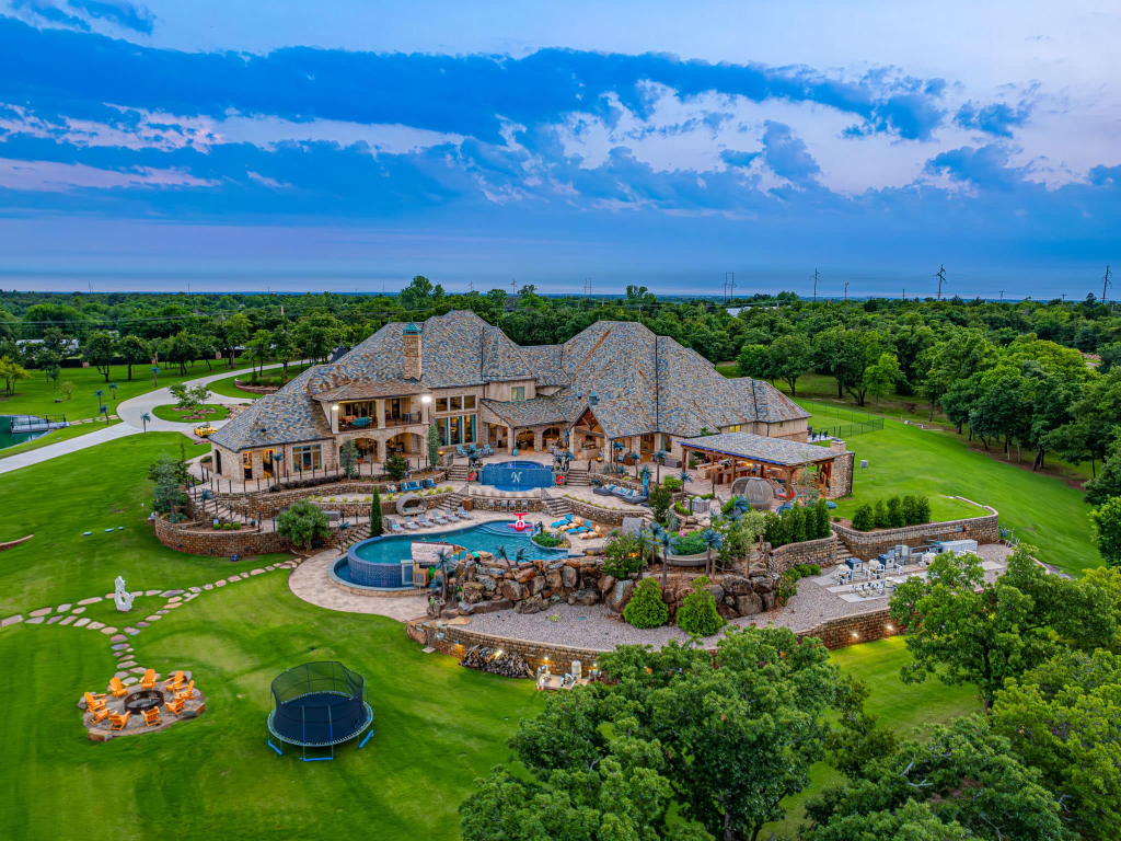 This OKC home is up there as the second most Blank Space mansion weโve ever seen. (I didnโt know they did it like this in OKC???) This mans has 19,000 sq ft on 36 acres with a 70,000 gallon pool, slide, grotto, hot tub, full outdoor kitchen, stocked pond, koi pond, 200 koi fish, electric shades, hidden staircases, multiple bar areas, golf driving balcony, firemanโs pole from the kids gaming area to the kitchen, as well as a professional bowling alley, game room,