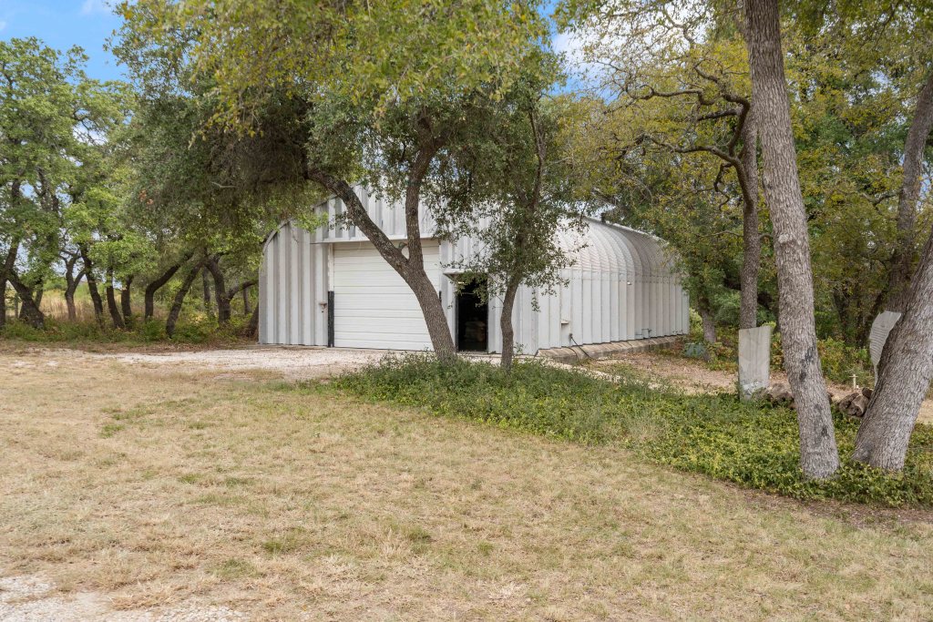 Nestled in the heart of Liberty Hill on 4.93 acres, this extraordinary 3-bed, 2 full bath/2 half bath home is the ultimate sanctuary for those seeking security, self-sustainability, and tranquility. Built with doomsday preparedness in mind, this bunker-style residence boasts 2 panic rooms with 14-18 inch concrete walls, providing unparalleled safety and peace of mind. The earth-sheltered design ensures very low electric utility costs and exceptional energy efficiency, maintaining a naturally cool interior temperature even without air conditioning. Enjoy the private gated entry on a secluded, dead-end street. The open-concept layout features tile flooring, a grand living room with a wood-burning stove, and a skylight perfect for gatherings. The kitchen includes a built-in oven, ample cabinet/countertop space, and a sizeable window that pours in natural light. A generous bar overlooks the kitchen, perfect for casual dining, food prep, or socializing with family/friends. Open to both the living room and sun-filled dining area, the kitchen fosters a seamless flow between spaces, making entertaining and everyday living a breeze. The spacious primary bedroom offers a ceiling fan, walk-in closet, and an en-suite bathroom with dual vanities, deep soaking tub, and separate walk-in shower. Secondary bedrooms include ceiling fans, walk-in closets, and charming lofts ideal for entertainment or extra storage. Beyond the residence, a 1200 sqft workshop in the backyard provides space for tools and toys, complete with HVAC and bathroom. The property’s 4.93 acres are bounded by a serene creek, offering a tranquil backdrop for outdoor activities. A 520-foot well, septic system, brand new HVAC, and propane supply ensure self-sustainability in any circumstance. Take pleasure in convenient proximity to amenities. This Liberty Hill gem is a rare find for those seeking a secure haven!