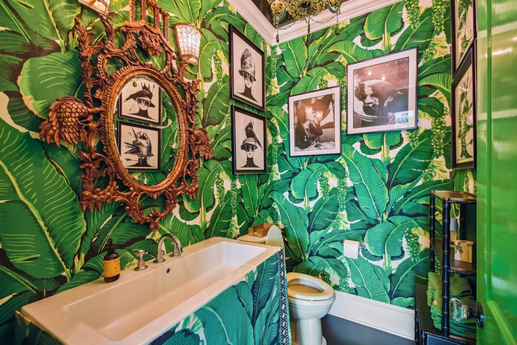 No maximalist home is complete without a powder room full of flowery wallpaper.
