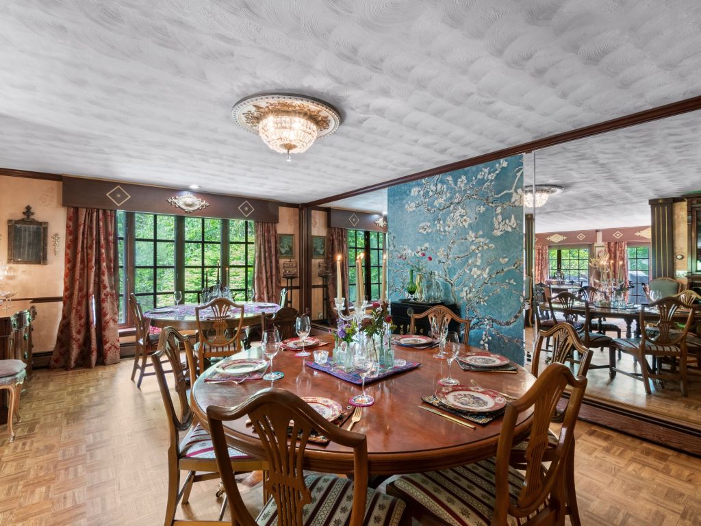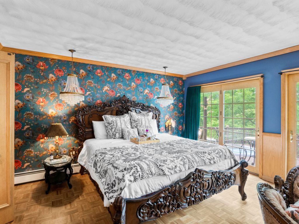 Welcome to Villa Sposa: a one-of-a-kind micro-resort privately set in a canopy of trees on a scenic hillside in the Catskills. Equal parts glamorous escape and architectural daydream, this maximalist retreat unfolds across nine private acres with vaulted ceilings, parquet floors, statement fireplaces, and a cascade of whimsical, worldly design moments at every turn.