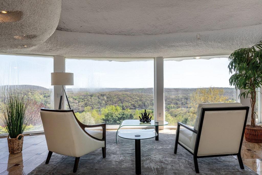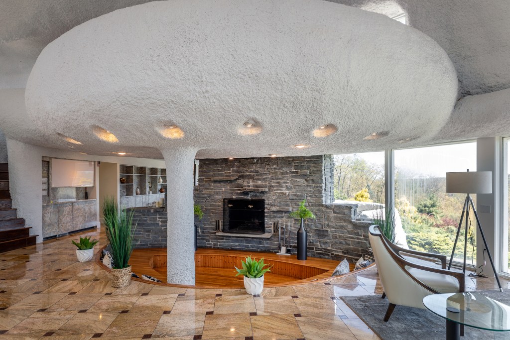 This futurist home, known as “Starcastle” AKA the Mushroom House in New Fairfield, CT was designed by architect Roy Mason for Ed Roman, owner of Las Vegas’ Ed Roman Guitars and Danbury’s Eastcoast Music Mall, in 1985. Currently listed for only $1,500,000.