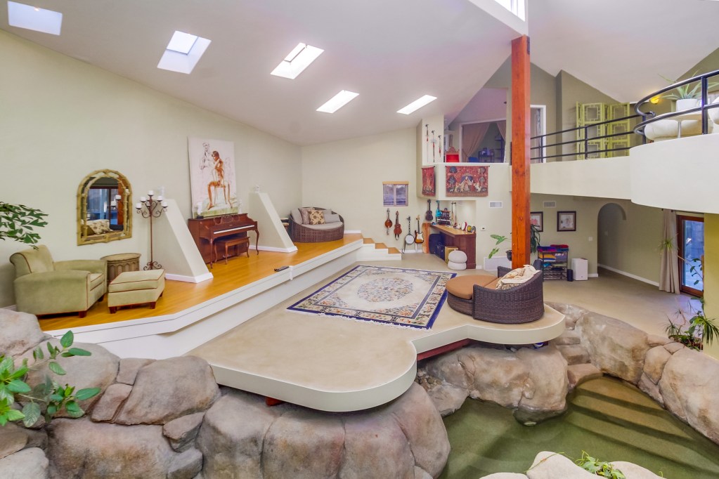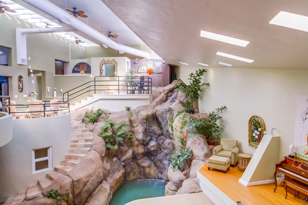 Discover the iconic Waterfall House, a breathtaking architectural gem with indoor waterfalls, 30-foot ceilings, and a central indoor pool. This expansive home features multiple mezzanines, a private primary suite with a spa-like bathroom and detached cottage with its own kitchen. Relax in tranquil courtyards, botanical gardens, and outdoor lounges with a firepit. The house also offers a serene yoga/meditation stage, an abundance of private spaces, and a sense of boundless open-air living throughout.Tucked away on a quiet cul-de-sac, this architectural gemโoriginally designed by architect Rob Quigleyโreturning you to your childhood where your imagination is unlimited by the concept of interior and exterior. Captivating 30+ ft ceilings and a breathtaking waterfall pool flowing through the home create a perfect space for musicians, artists and entertainers alike. The acoustics rival a concert hall, and the natural lightโperfect year-roundโenhances its potential as an art gallery. A spacious stage by the pool invites performance, artistic expression, or immersive entertainment, making this home unlike any other. Step onto the expansive deck and take in views from dawn to dusk, while multi-level ceilings fill the space with light and airiness. A private 300 sq. ft. guest house with a separate entrance offers a serene retreat or creative workspace. Known as one of San Diegoโs most iconic homes, it has captivated millions, with videos showcasing its visionary design garnering over 66 million views. More than just a home, this is a space where imagination, nature, and artistry mergeโwhere life itself becomes an inspired masterpiece and your dream home awaits.