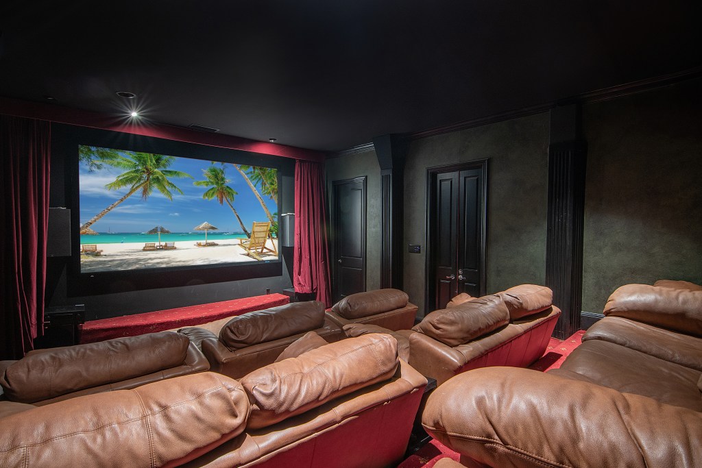 No Stan Lee home would be complete without a home theater screen room. The leather couches look super cozy.
